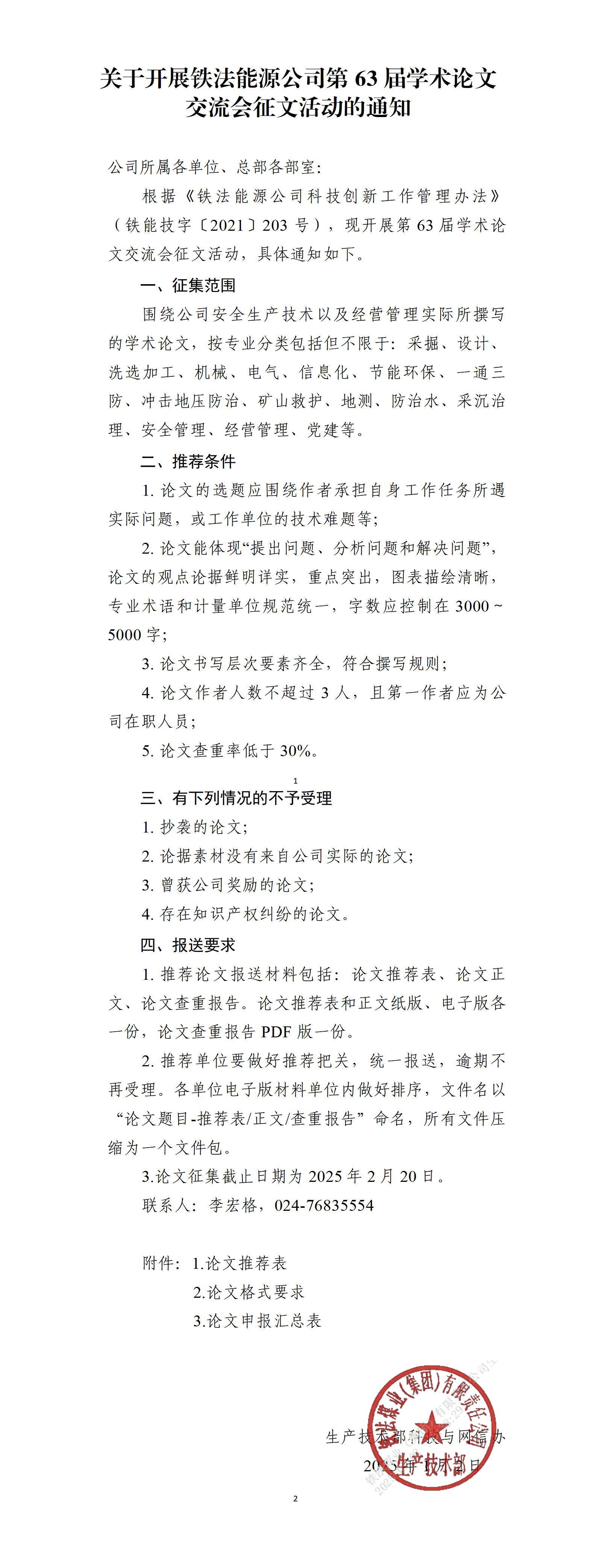 關(guān)于開展鐵法能源公司第63屆學(xué)術(shù)論文交流會征文活動的通知