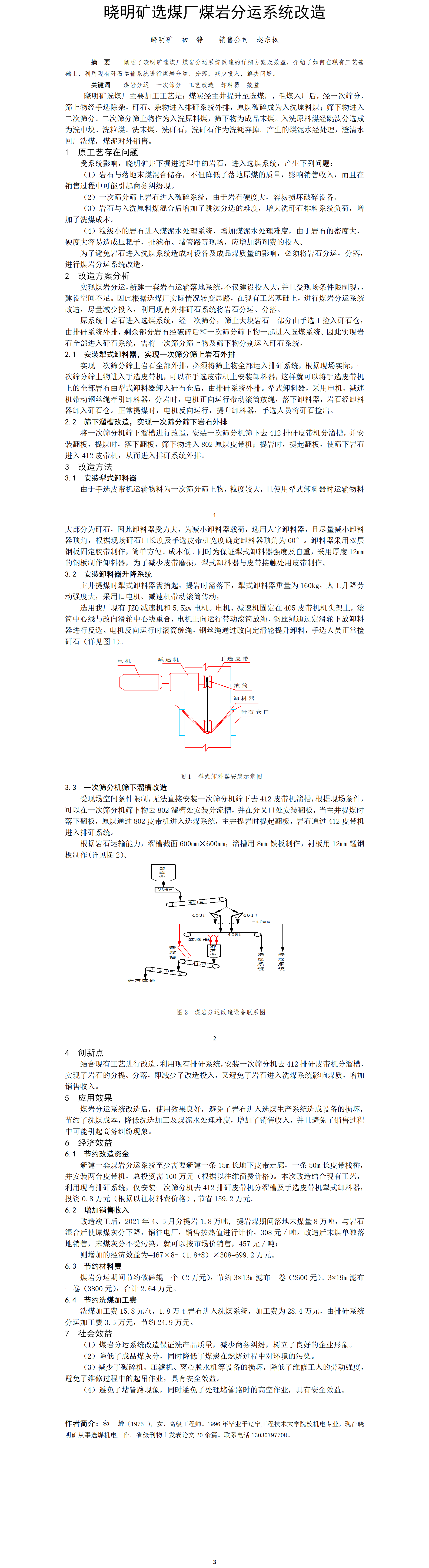 第59屆等級(jí)獎(jiǎng)?wù)撐?--曉明礦選煤廠煤巖分運(yùn)系統(tǒng)改造