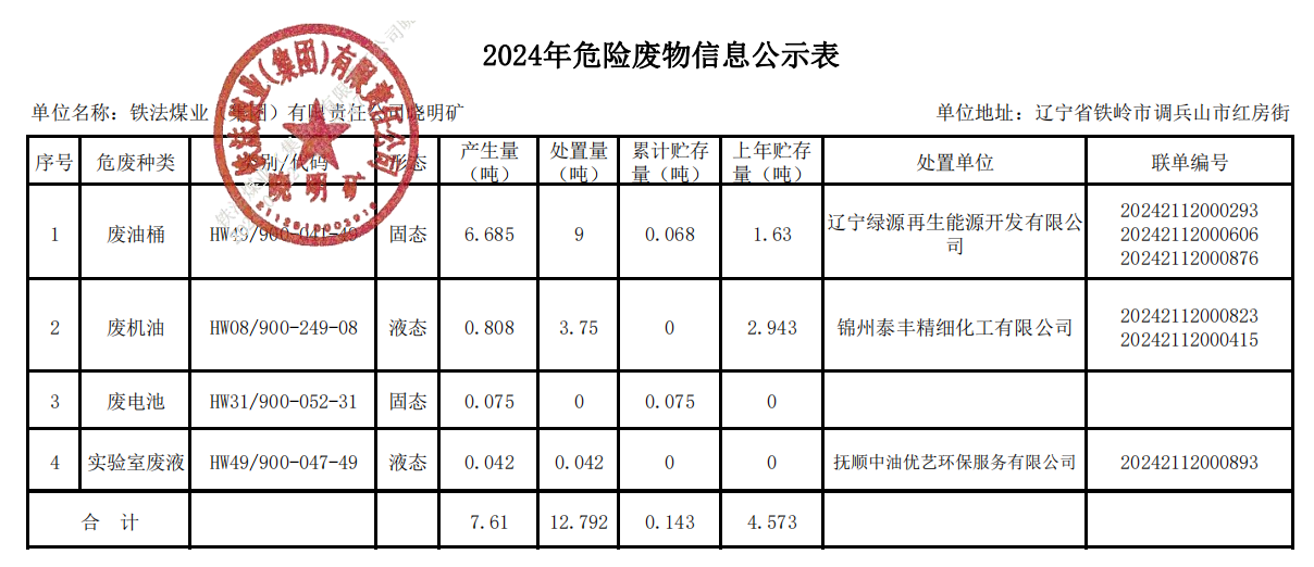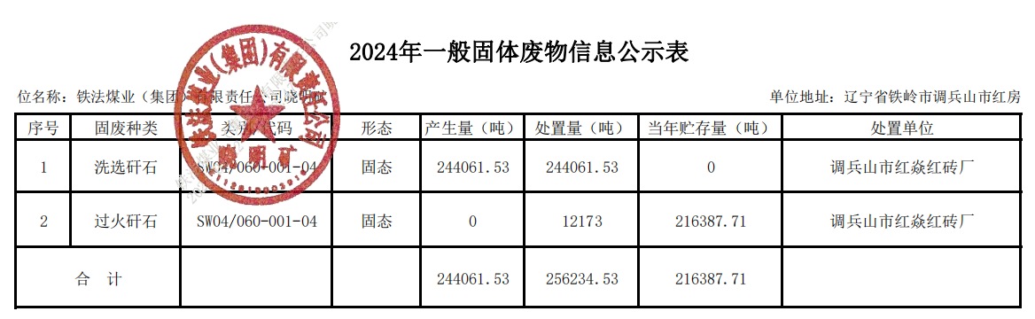 曉明礦2024年度固體廢物污染環(huán)境防治信息