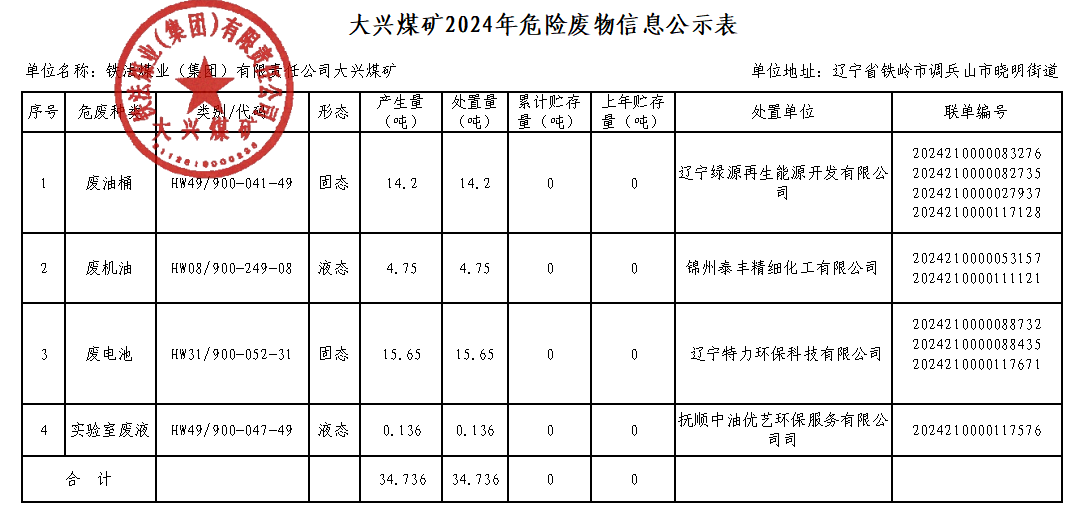 大興礦2024年度固體廢物污染環(huán)境防治信息