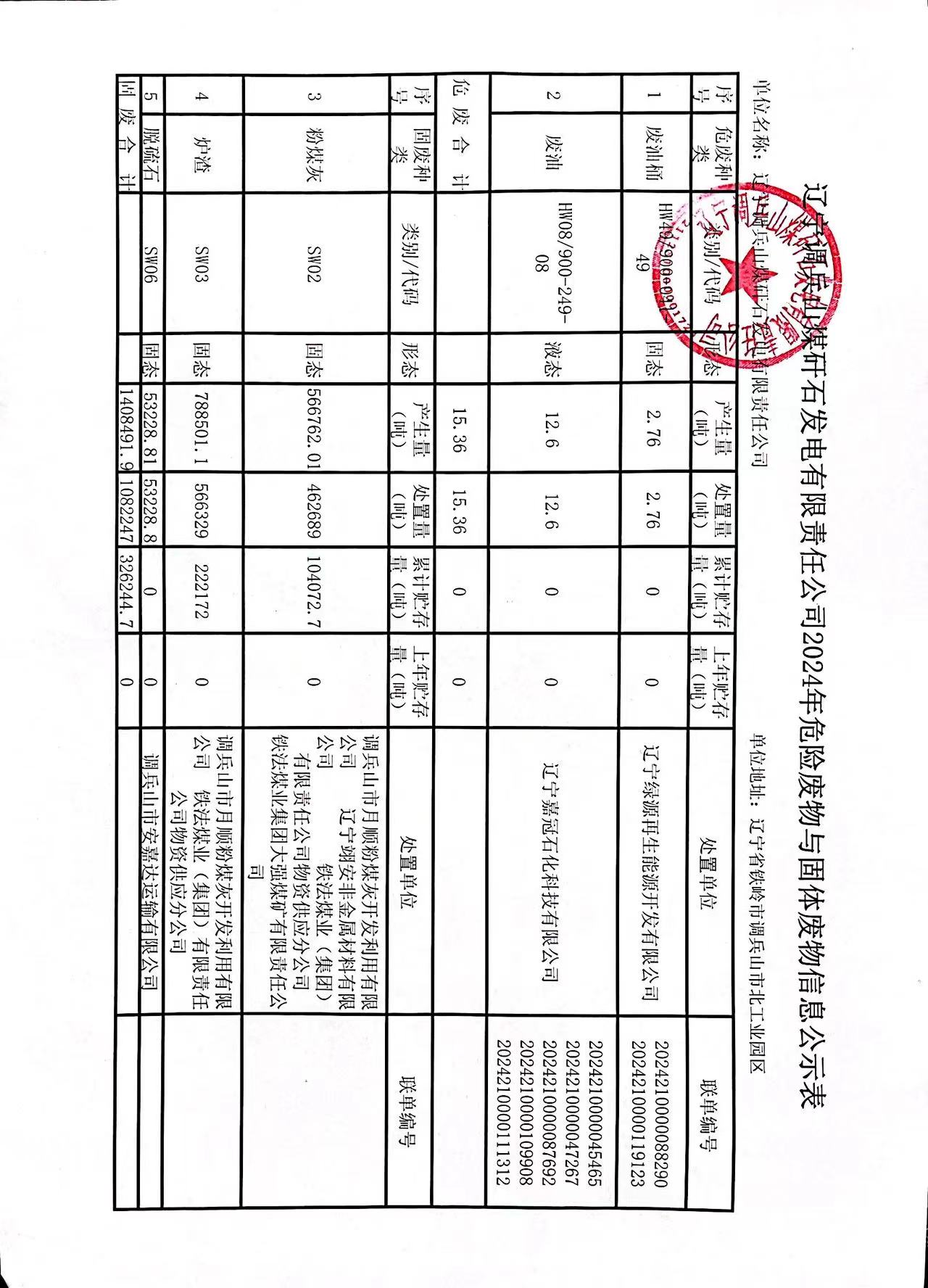 煤矸石發(fā)電公司2024年度固體廢物污染環(huán)境防治信息