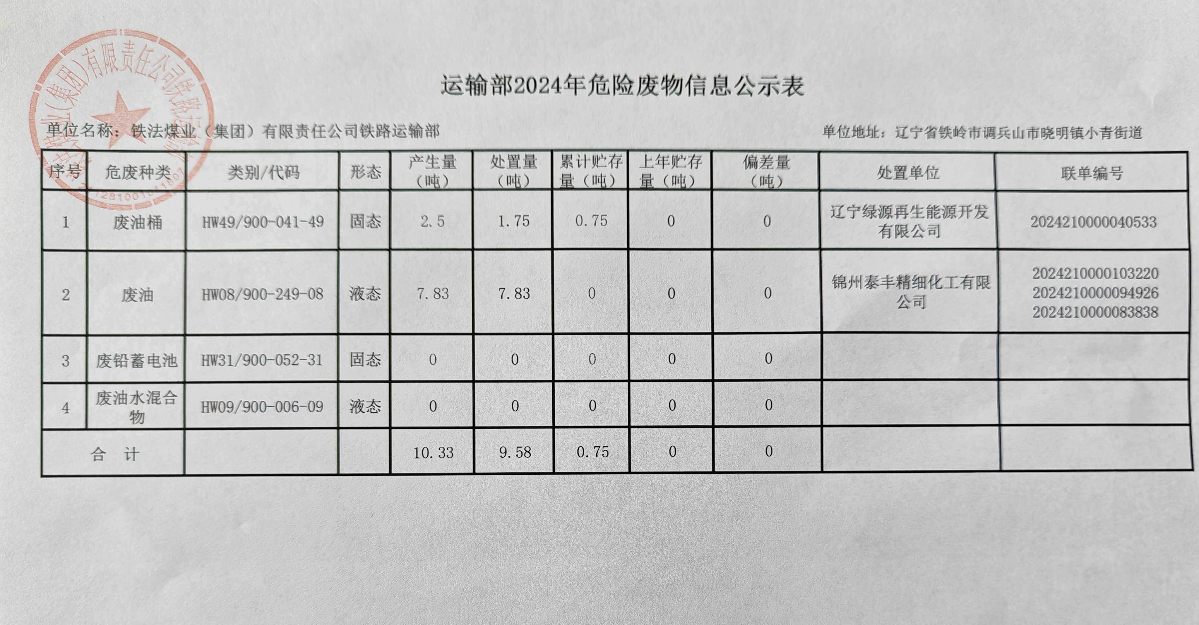 運(yùn)輸部2024年度固體廢物污染環(huán)境防治信息