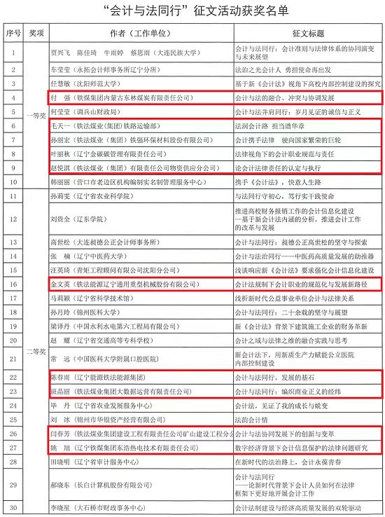 近日,省“會計與法同行”征文活動評選結(jié)果公布,公司5名職工論文榮獲一等獎,20名職工論文分獲二、三等獎。
