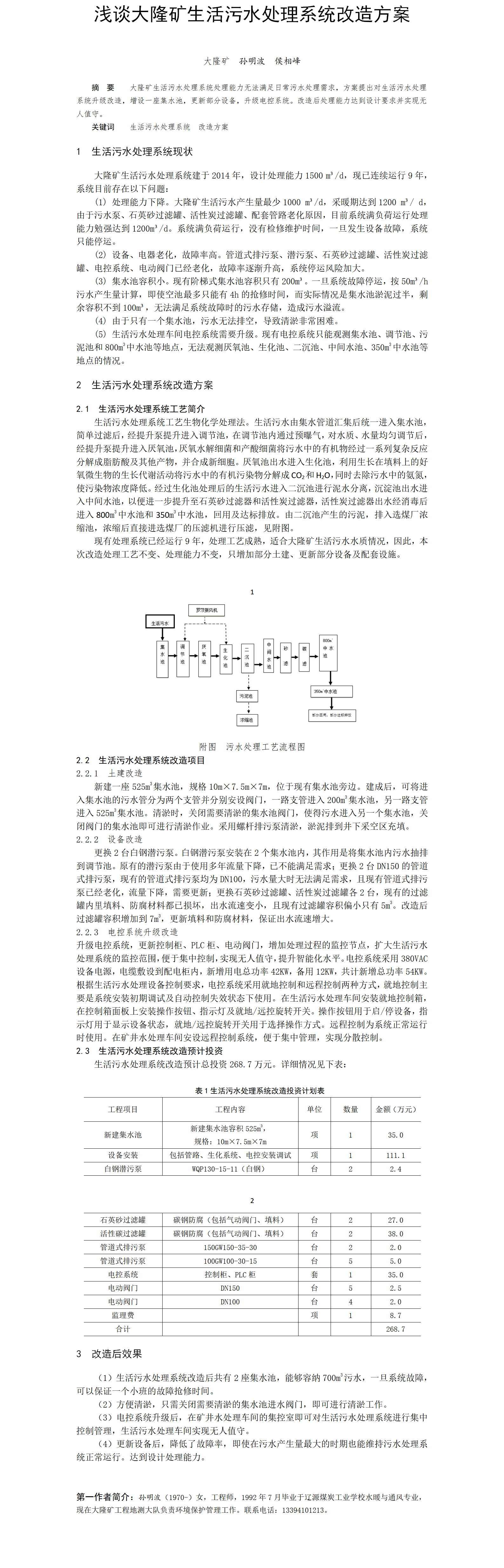 第59屆等級(jí)獎(jiǎng)?wù)撐?--淺談大隆礦生活污水處理系統(tǒng)改造方案