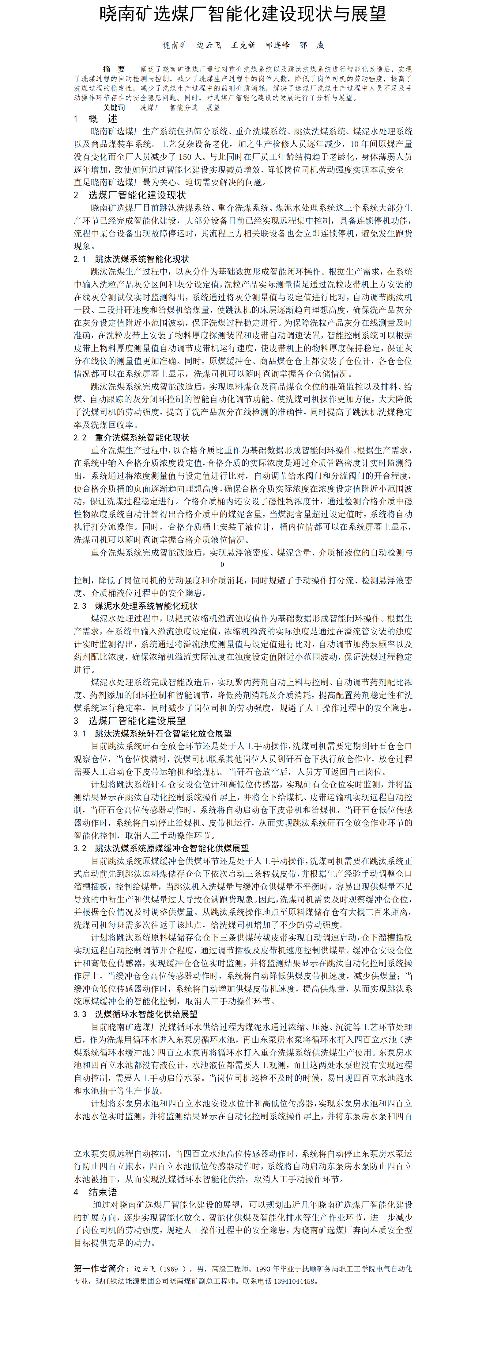 第59屆等級獎(jiǎng)?wù)撐?--曉南礦選煤廠智能化建設(shè)現(xiàn)狀與展望