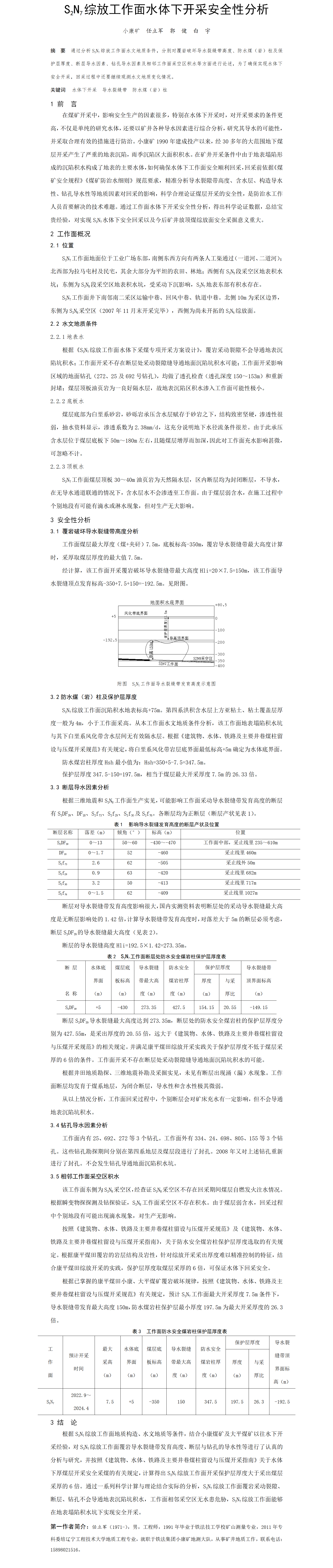 第59屆等級獎?wù)撐?--S2N7綜放工作面水體下開采安全性分析