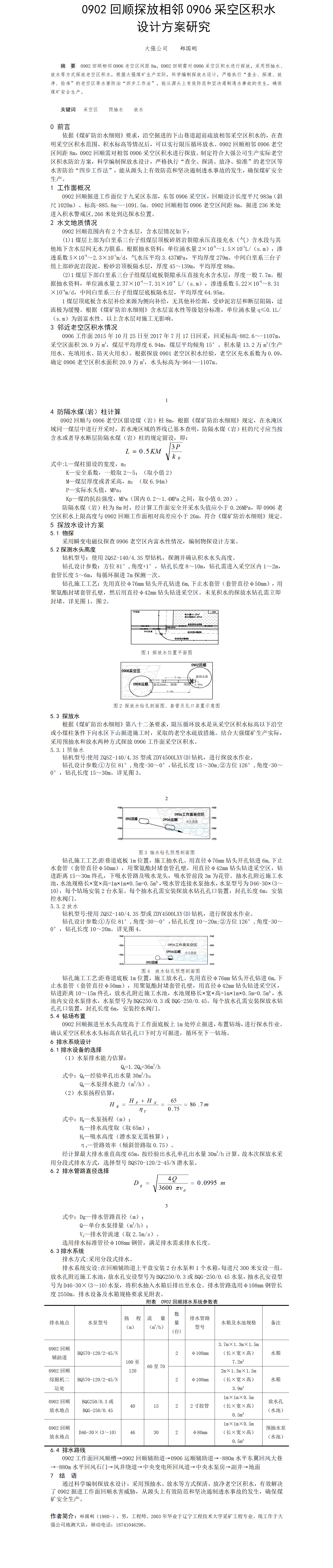 第59屆等級(jí)獎(jiǎng)?wù)撐?--0902回順探放0906采空區(qū)積水設(shè)計(jì)方案研究