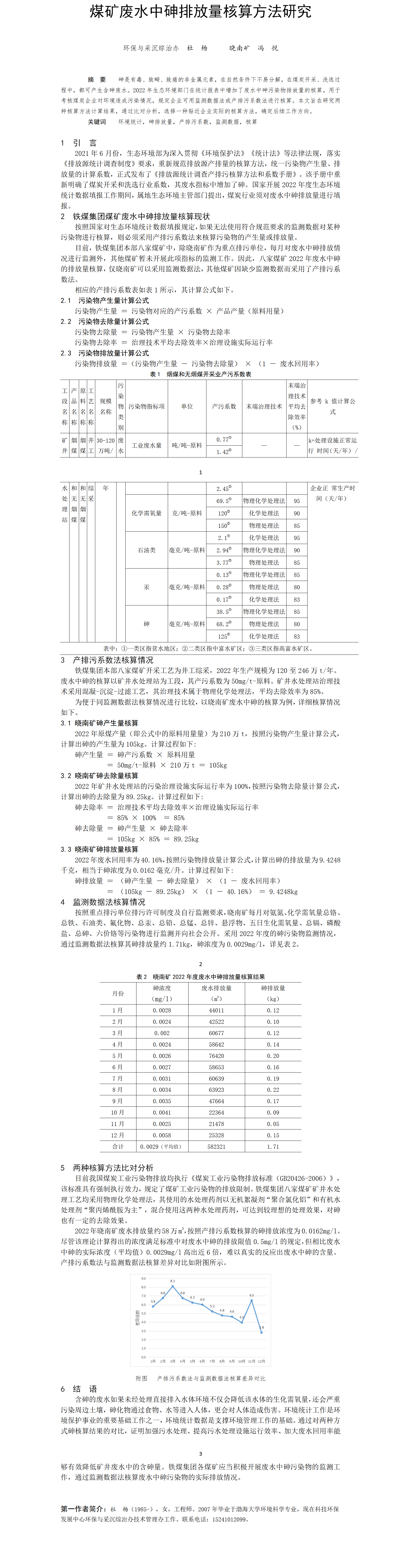 第59屆等級(jí)獎(jiǎng)?wù)撐?--煤礦廢水中砷排放量核算方法研究