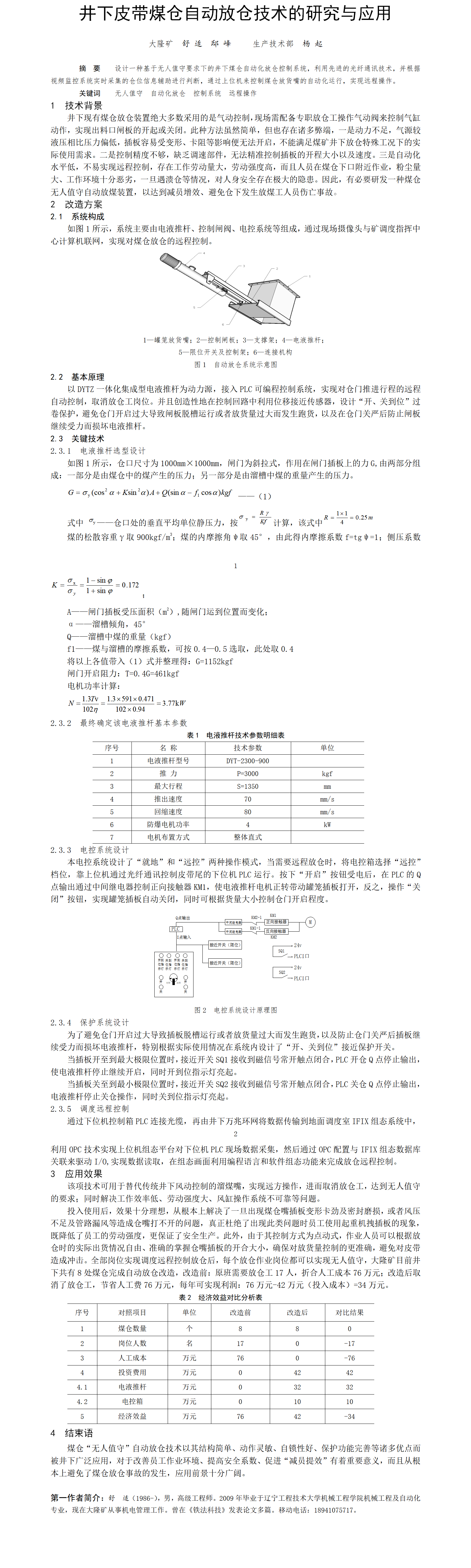 第60屆等級獎?wù)撐?--井下皮帶煤倉自動放倉技術(shù)的研究與應(yīng)用