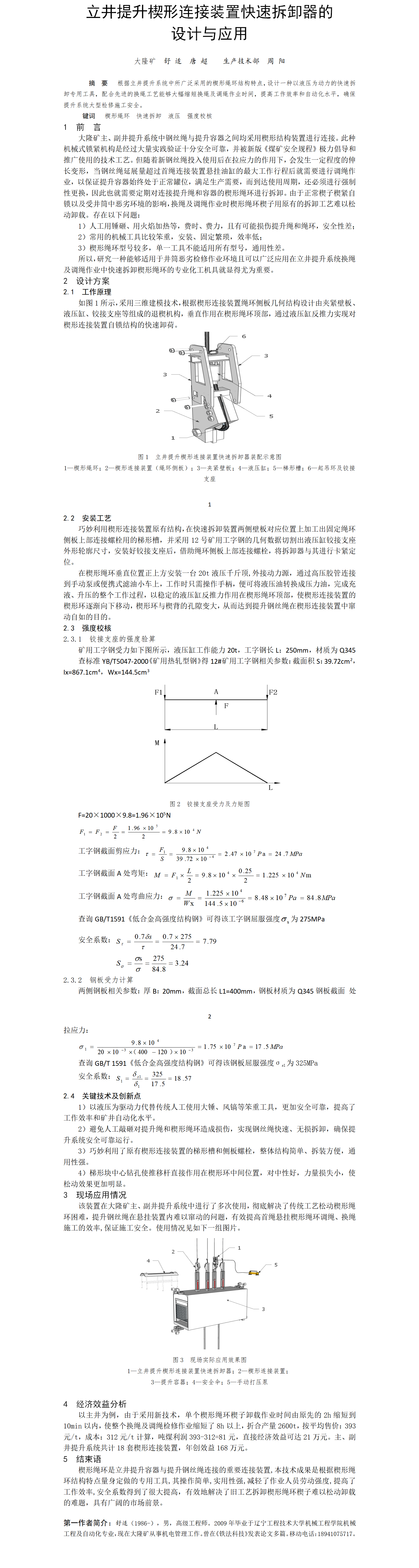 第60屆等級獎?wù)撐?--立井提升楔形連接裝置快速拆卸器的設(shè)計(jì)與應(yīng)用