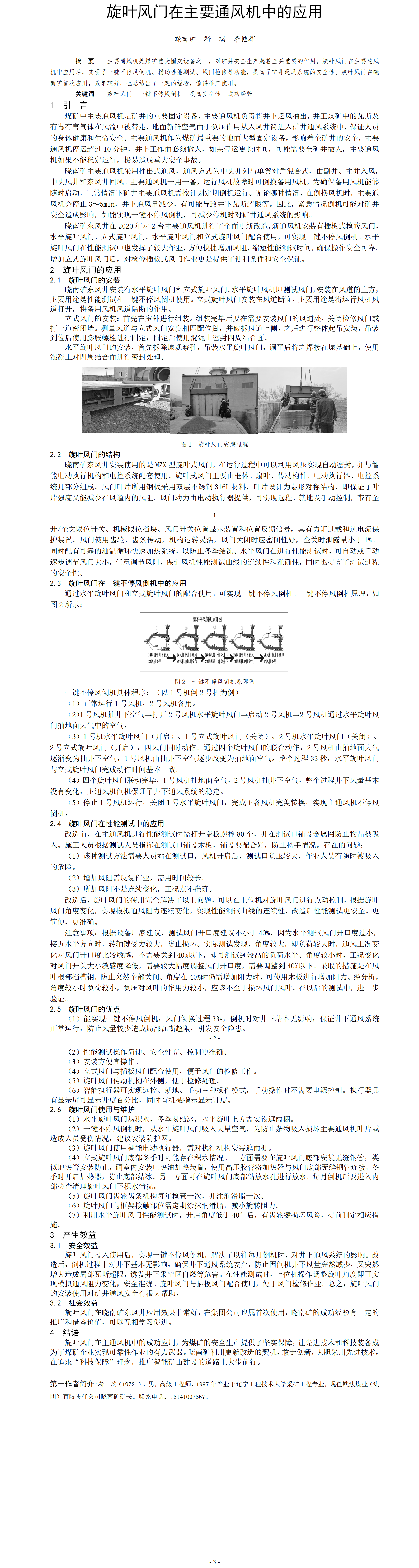 第60屆等級獎論文---旋葉風門在主要通風機中的應用