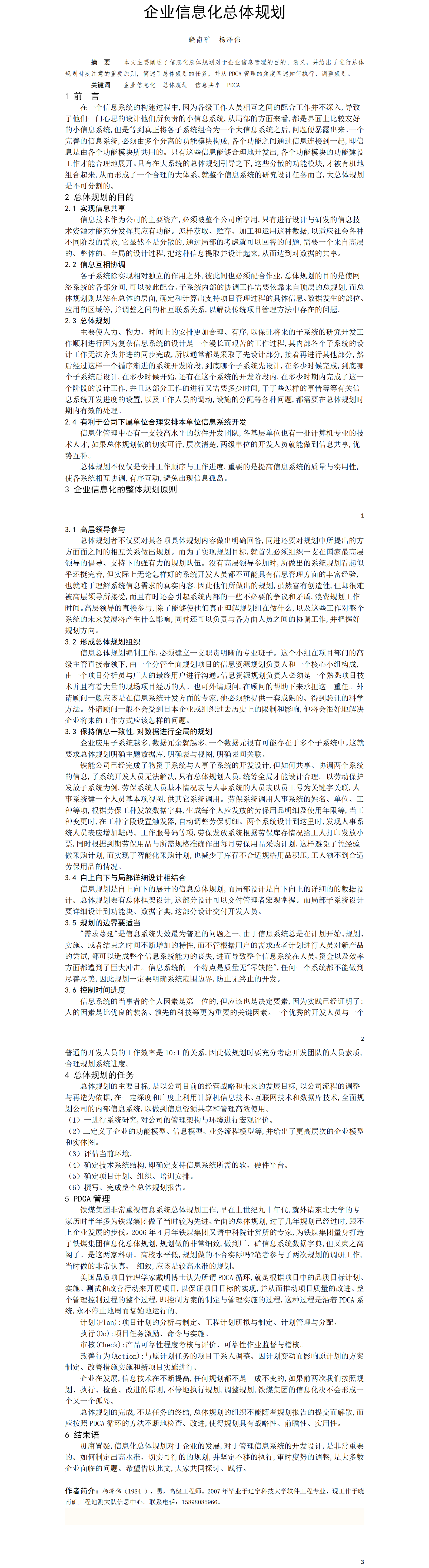 第60屆等級獎?wù)撐?--企業(yè)信息化總體規(guī)劃