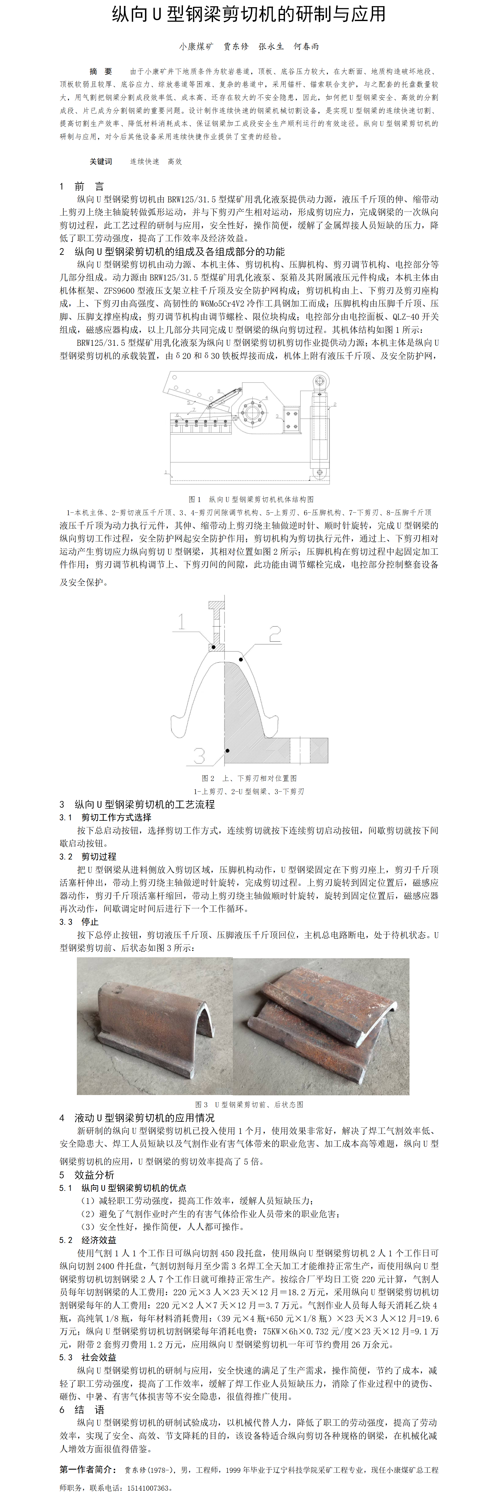 第60屆等級(jí)獎(jiǎng)?wù)撐?--縱向U型鋼梁剪切機(jī)的研制與應(yīng)用