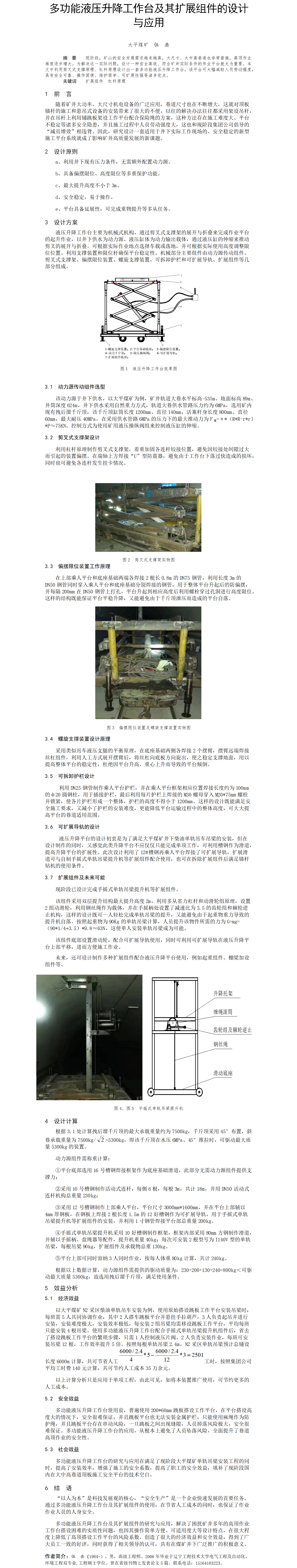 第60屆等級(jí)獎(jiǎng)?wù)撐?--多功能液壓升降工作臺(tái)及其擴(kuò)展組件的設(shè)計(jì)與應(yīng)用