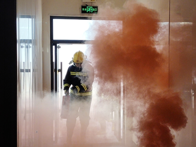 演練模擬總場調(diào)度室接到食堂職工報告,一樓廚房灶臺處發(fā)生火情,有大量煙霧飄出,火勢有蔓延可能。該場立即啟動消防應急(滅火)疏散預案,拉響消防應急疏散警報,并通知安全保衛(wèi)部組織應急隊員攜帶滅火器具趕往食堂撲救。同時,切斷食堂電源、關(guān)閉燃氣總開關(guān)。安保部人員根據(jù)火情發(fā)生點,選擇安全的疏散路線,引導食堂及樓內(nèi)員工用濕毛巾掩住口鼻、彎腰快速奔向安全出口,撤離到辦公樓外安全區(qū)域,演練圓滿結(jié)束。