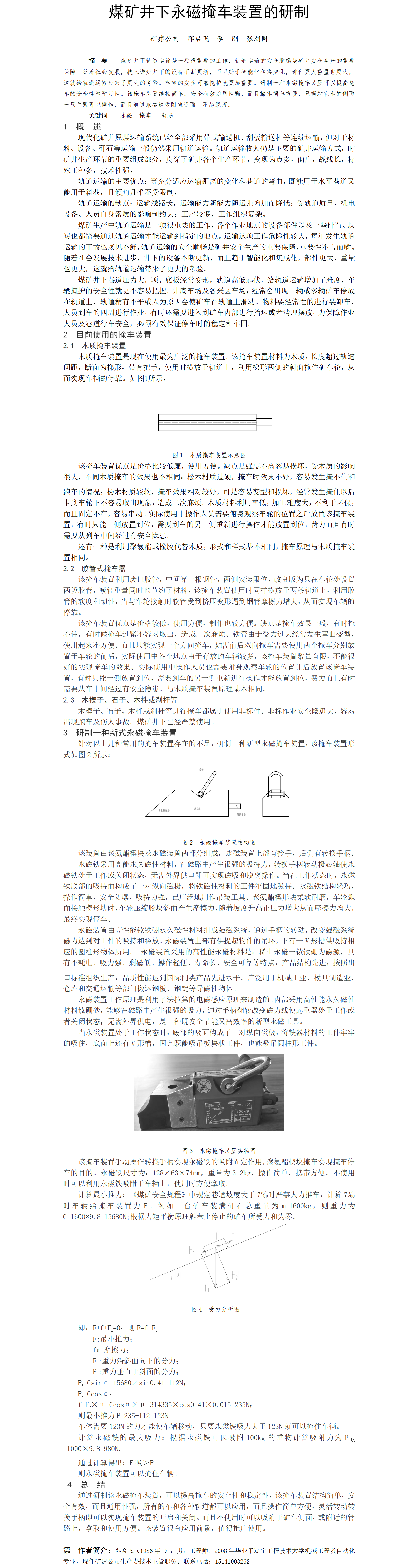第60屆等級獎(jiǎng)?wù)撐?--煤礦井下永磁掩車裝置的研制