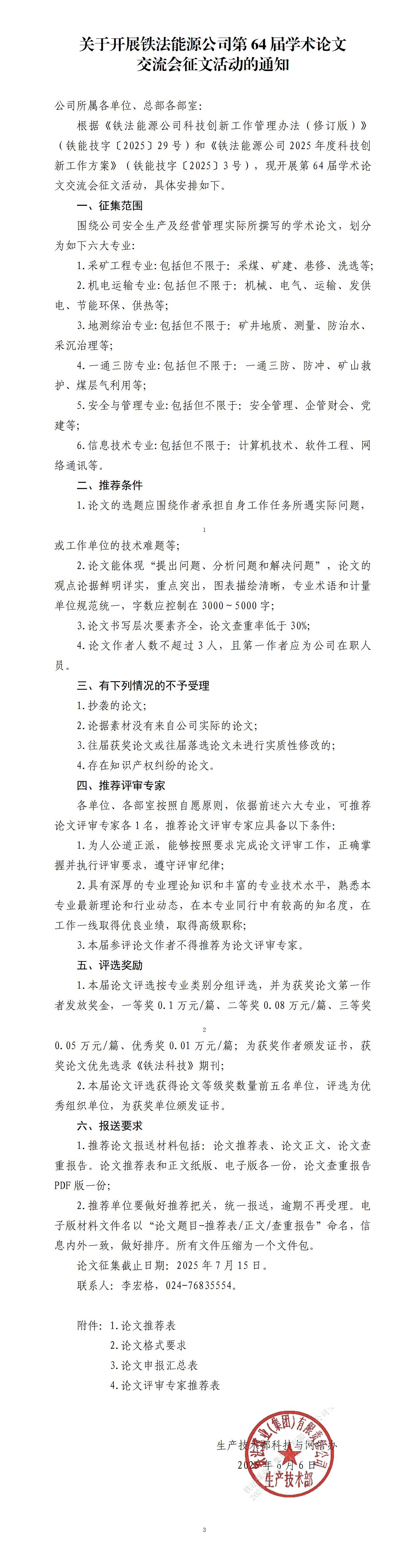 關于開展鐵法能源公司第64屆學術論文交流會征文活動的通知