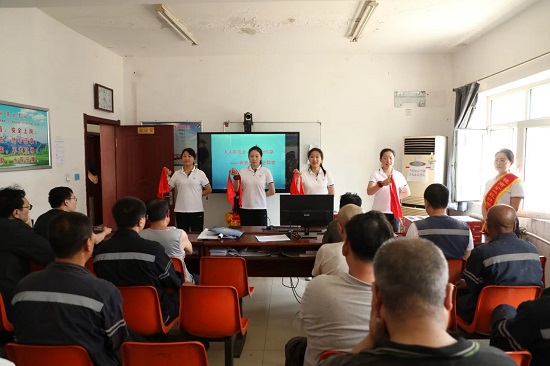 ▲曉南礦巾幗志愿者來到職工班前會(huì),表演手勢(shì)舞和安全教育快板,提醒大家時(shí)刻保持警惕,杜絕不安全行為。