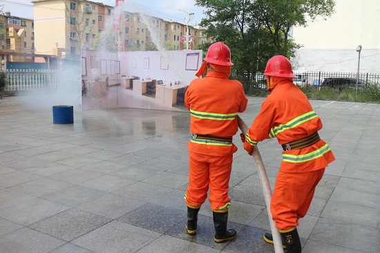 ▲建設(shè)公司開展消防火演練。