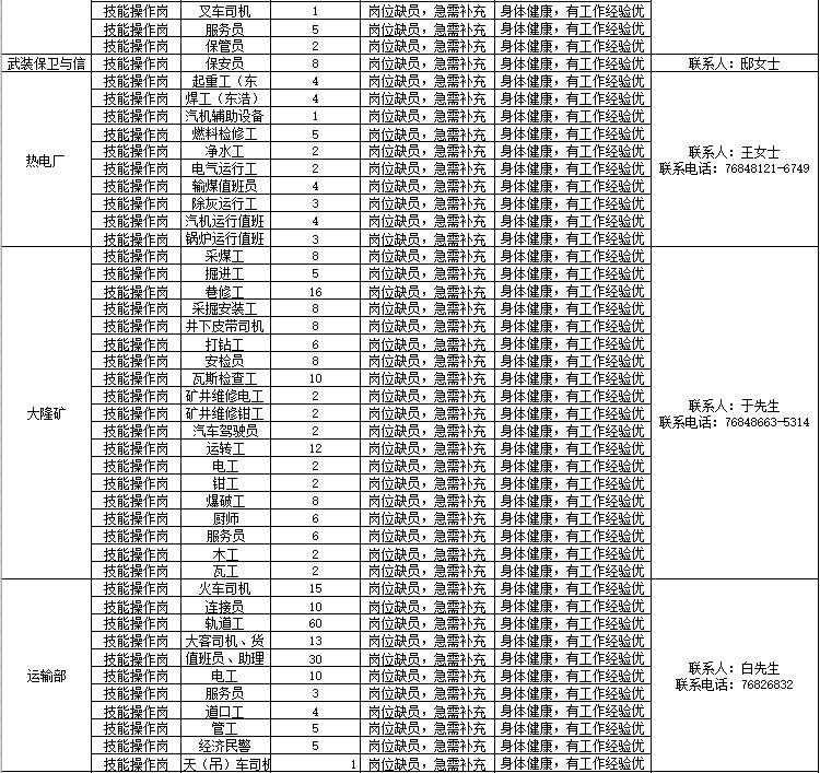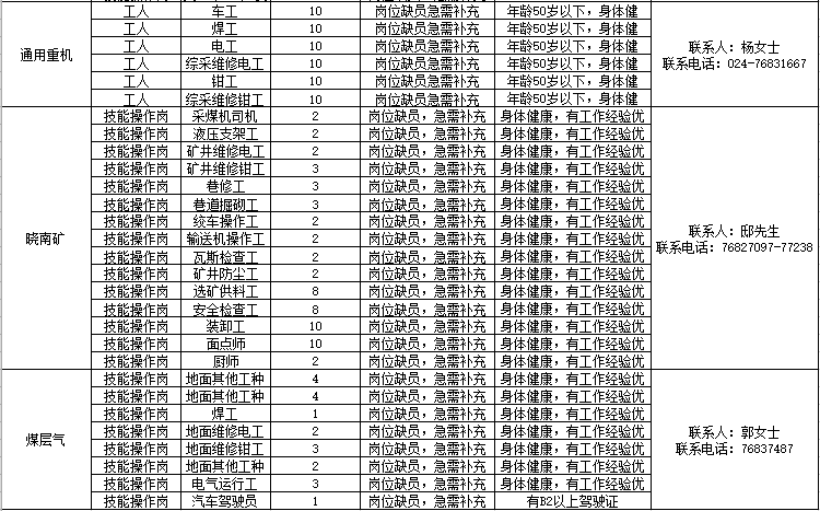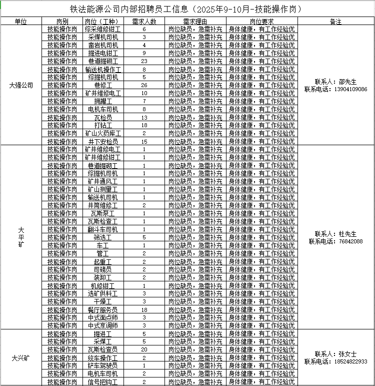 鐵法能源公司內(nèi)部招聘員工信息(2025年9-10月-技能操作崗)