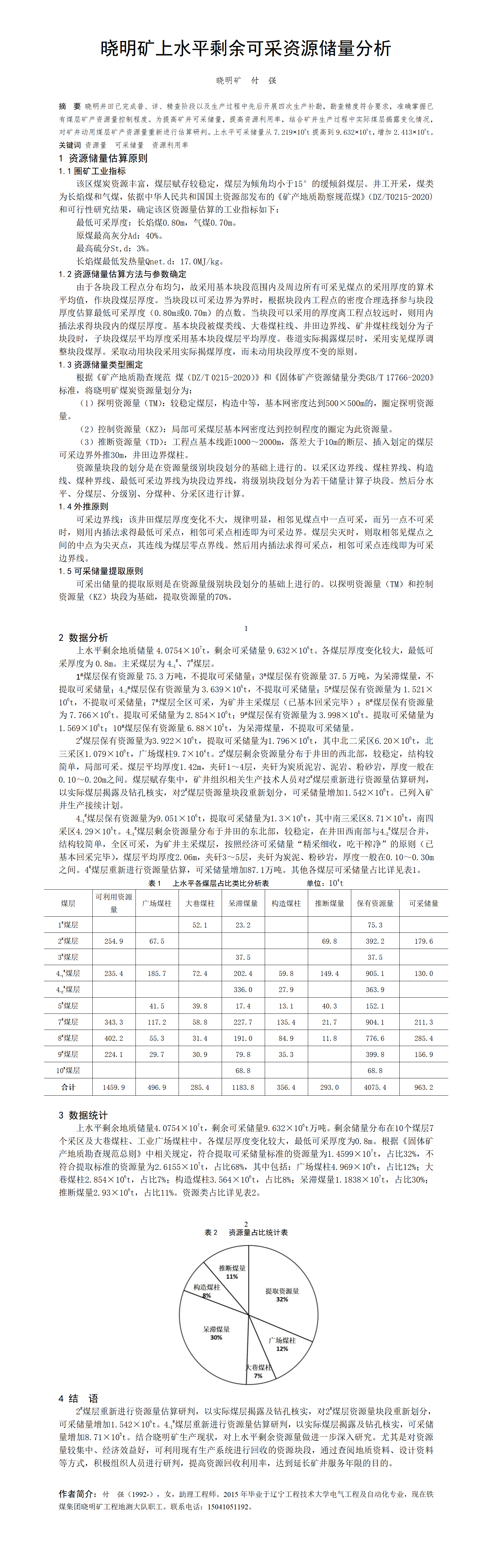 第61屆等級獎論文---曉明礦上水平可采資源儲量分析