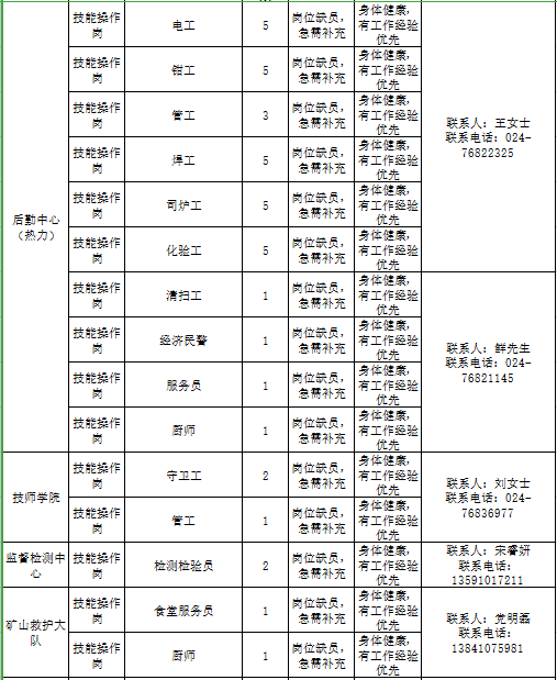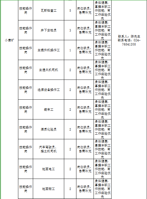 鐵法能源公司內(nèi)部崗位需求信息(11-12月)
