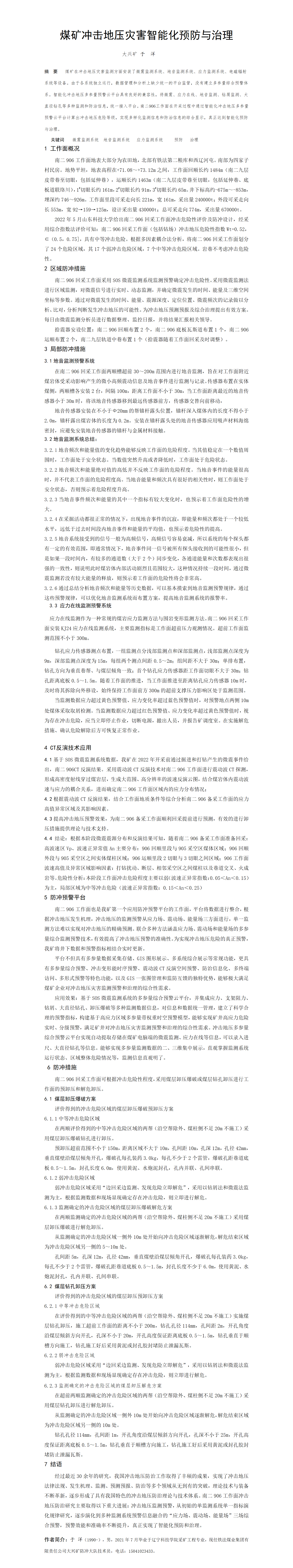 第61屆等級(jí)獎(jiǎng)?wù)撐?--煤礦沖擊地壓災(zāi)害智能化預(yù)防與治理