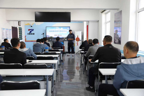 為提升入井人員對(duì)突發(fā)事件的應(yīng)對(duì)能力,近日,大隆礦開(kāi)展了自救器與避災(zāi)路線專(zhuān)項(xiàng)培訓(xùn)。