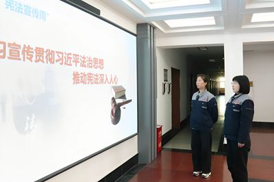 該部在線上利用微信群轉(zhuǎn)發(fā)習(xí)近平法治思想、黨的二十屆四中全會精神、中央全面依法治國工作會議精神等內(nèi)容組織職工學(xué)習(xí)。線下利用電子屏、板報等形式進(jìn)行廣泛宣傳,政工干部深入基層班前會對法律知識進(jìn)行講解,將憲法精神融入職工心中,營造出尊法、學(xué)法、守法、用法的良好法治氛圍。