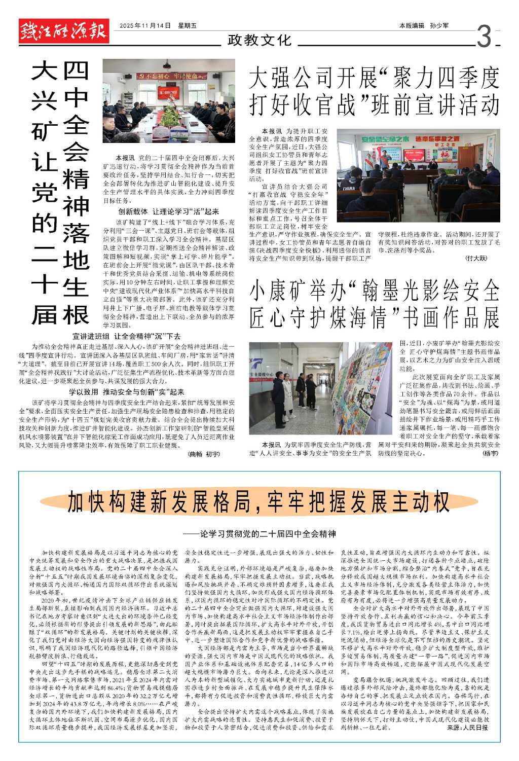 大興礦讓黨的二十屆四中全會(huì)精神落地生…