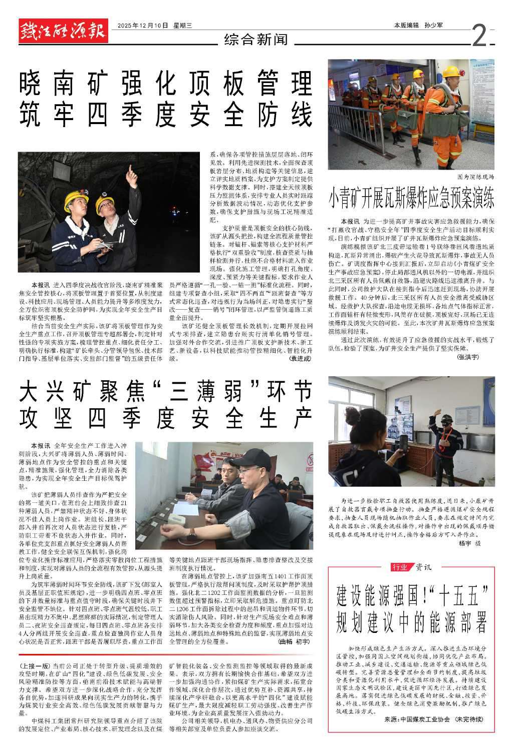 曉南礦強(qiáng)化頂板管理 筑牢四季度安全防…