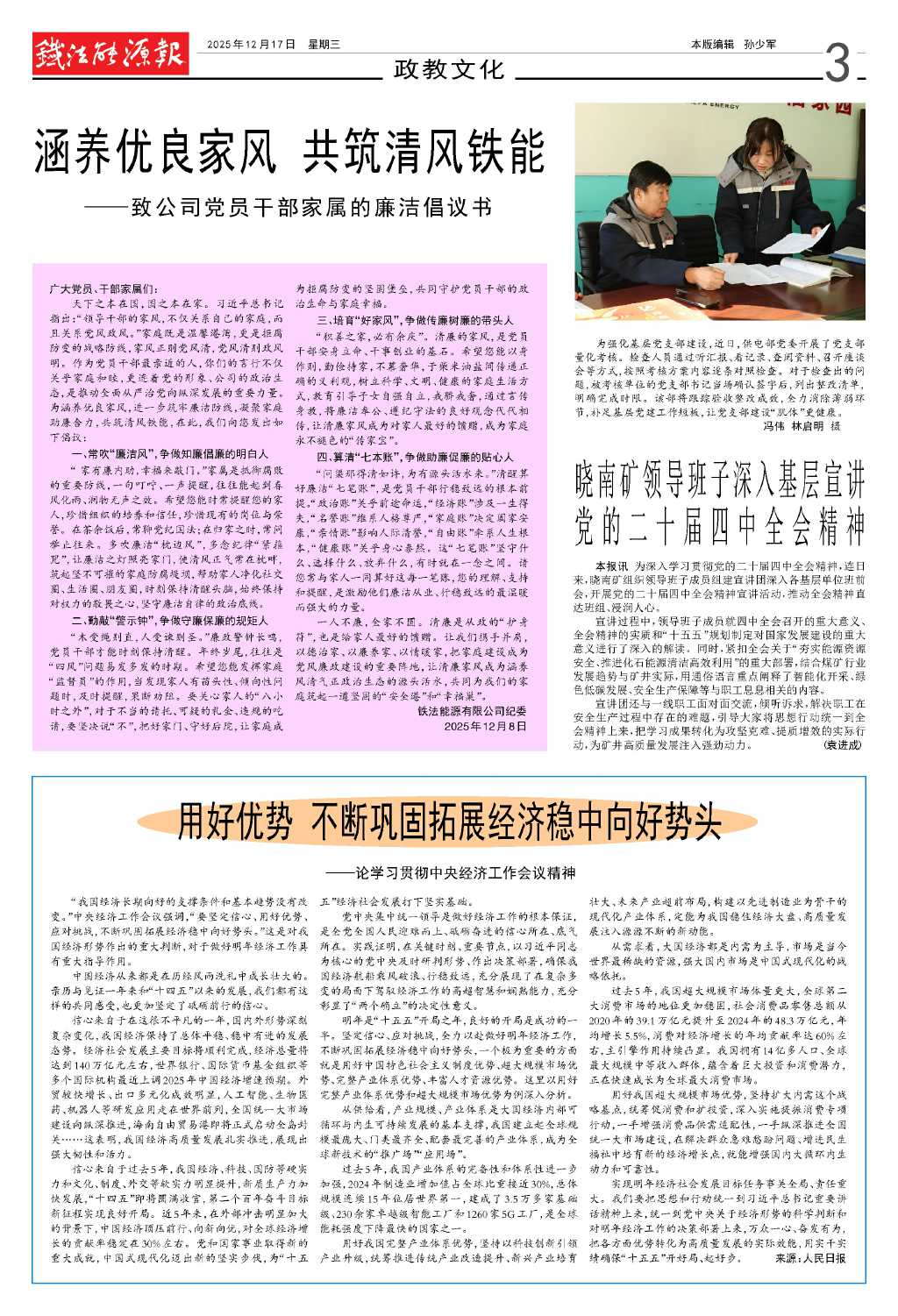 涵養(yǎng)優(yōu)良家風 共筑清風鐵能