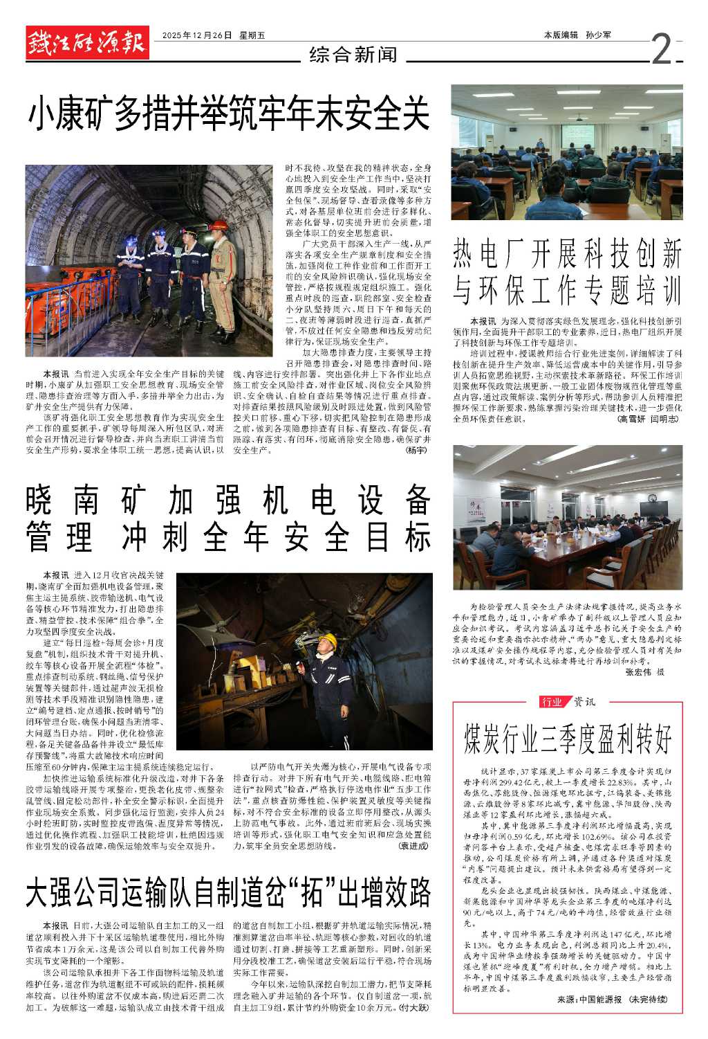 曉南礦加強機電設備管理 沖刺全年安…